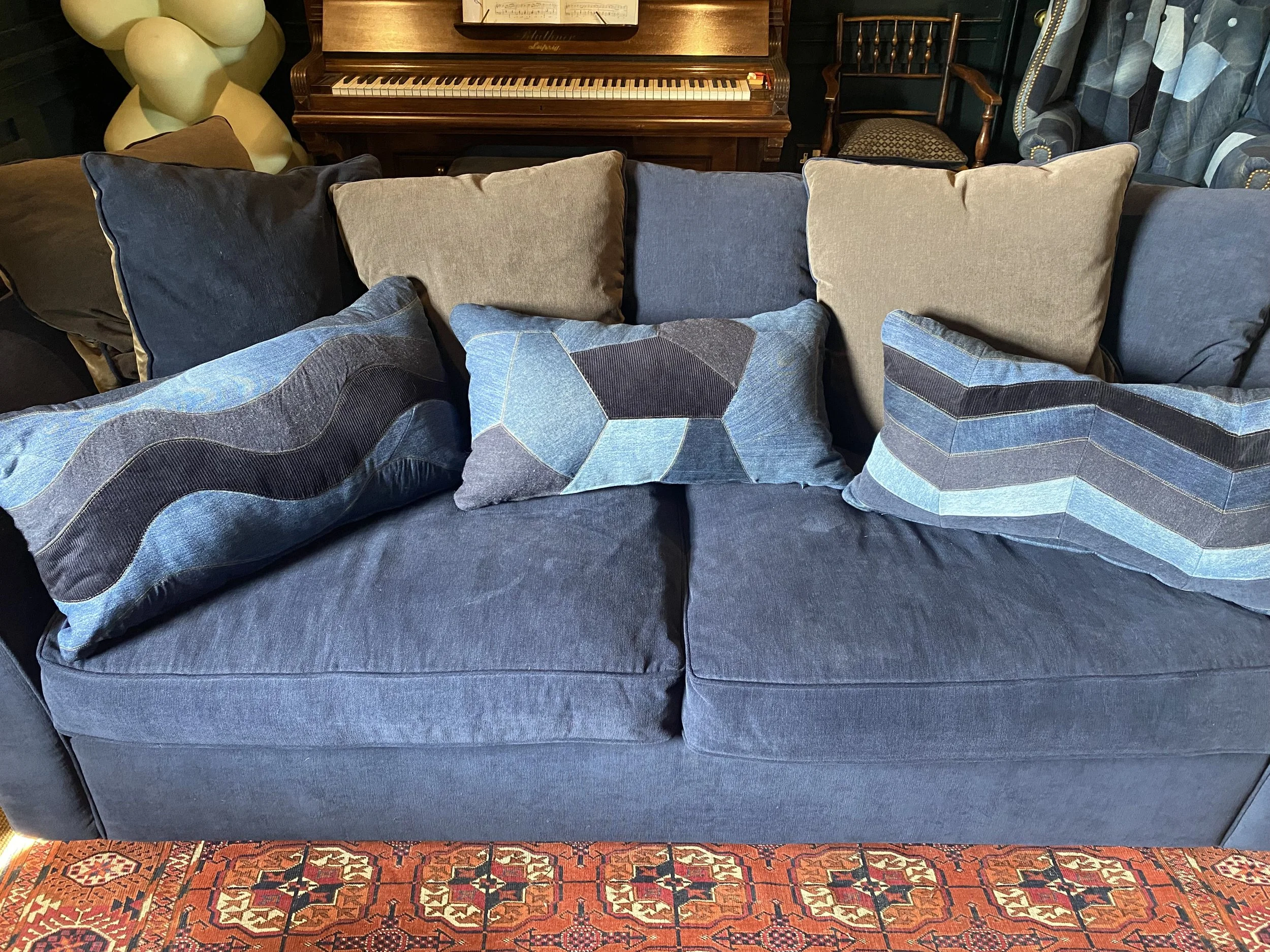 The excellent Douglas Mackie – interior designer of great refinement and cosmopolitan taste – tipped me off a year ago that he and his industry peers favoured long cushions. Hmm. Others, including Russell Pinch, in whose shop I exhibited for London Craft Week two years back, had also suggested that cushions might be a useful, entry-level product. But patchwork cushions? I asked myself with a sigh. Must it come to that?